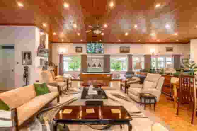 This ambassadorial residence is set on a sprawling 2.25 acres of prime freehold land in the heart of Karen. Discover this 6-bedroom private sanctuary which blends architectural grandeur with refined comfort. A grand reception area with a cascading waterfall sets the tone, leading into a sunken lounge with fireplace, elevated sitting area, and bar. The formal dining room opens to manicured gardens and a heated pool, while the state-of-the-art kitchen includes a central island, pantry, wet kitchen, and laundry. Generous accommodation includes a family wing offering expansive lounges, a heated Jacuzzi, and serene garden views.