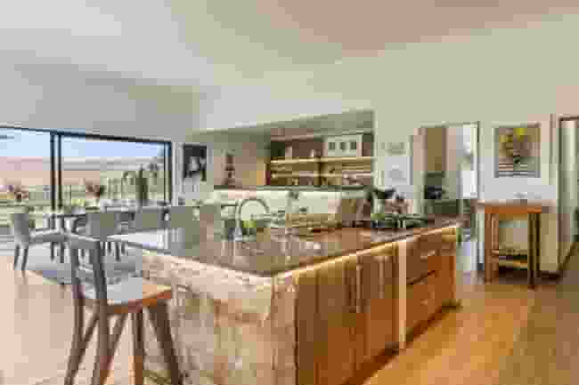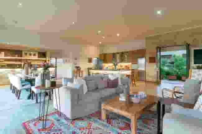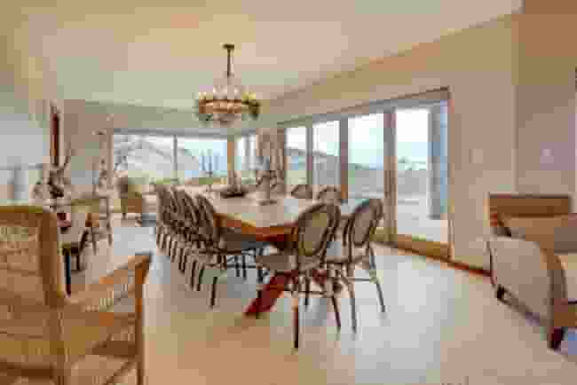 Ideally located to enjoy uninterrupted sea views stretching across numerous fairways, extending to the clubhouse beyond. This home celebrates its surroundings with expansive open spaces and double-glazed windows throughout. The lounge features floor-to-ceiling interlocking sliding glass doors, creating seamless indoor-outdoor living, while a gas fireplace adds warmth in cooler months. The open-plan kitchen and scullery extend to a spacious enclosed braai room with both wood and gas options, ideal for entertaining. The home is tastefully furnished throughout, with each space complementing the open layout and enhancing the sense of light and flow.