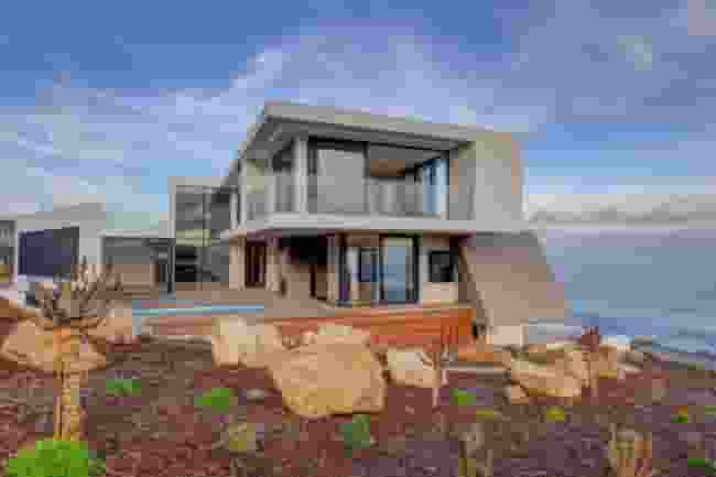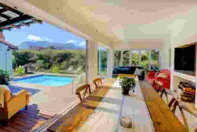 Discover a refined coastal retreat in this striking multi-level residence set on a precipice, capturing panoramic ocean views. The home features expansive windows and sliding doors throughout. The middle level hosts open-plan living, dining, a sophisticated kitchen and private cellar. This space extends to an indoor braai area that opens seamlessly to an entertainment balcony. A lift connects all the levels. The upper level offers two en-suite bedrooms, while the middle includes a further en-suite bedroom. The lower level consists of a pyjama lounge, pool terrace and braai, complemented by an additional en-suite bedroom.