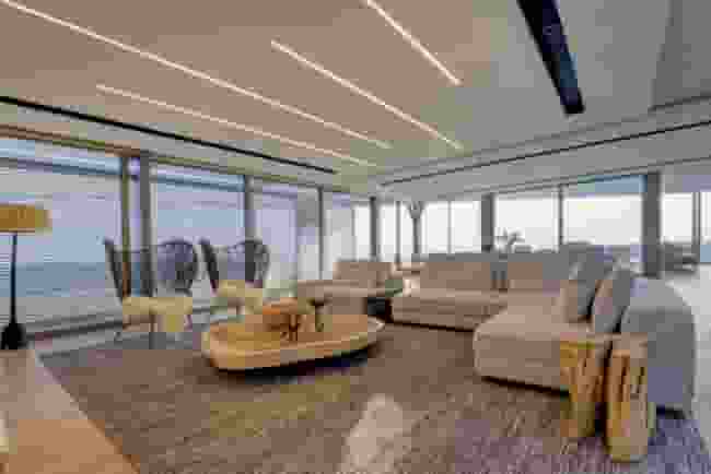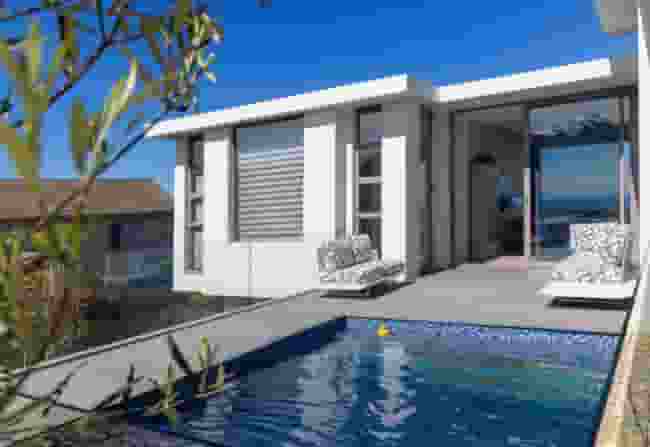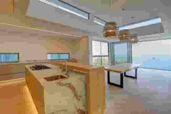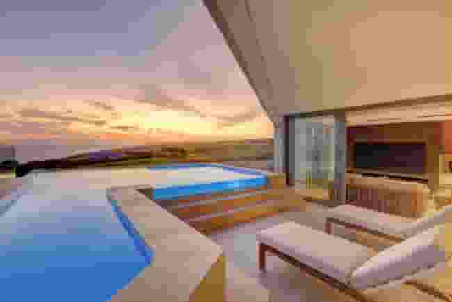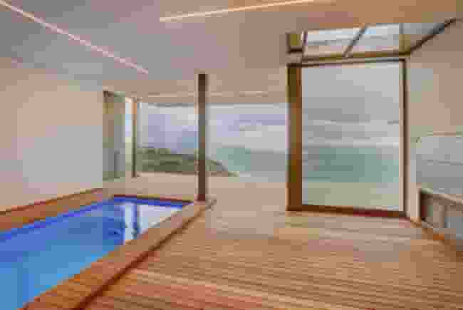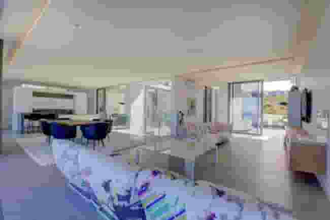 Set on the cliff edge of Eastern Heads lies this coastal masterpiece where nature and design embrace harmoniously. The double volume entrance foyer and sculpted water feature with Koi, sets the tone for tranquillity and wonder. The open-plan living area flows effortlessly between the lounge with gas fireplace, dining area, a bespoke bar, and a discreet office nook — all opening onto the covered patio, where the heated pool and Jacuzzi create the ultimate in relaxed luxury. Here you are invited to revel in the ever-changing views of the endless ocean and sky.