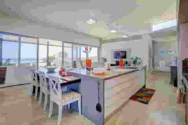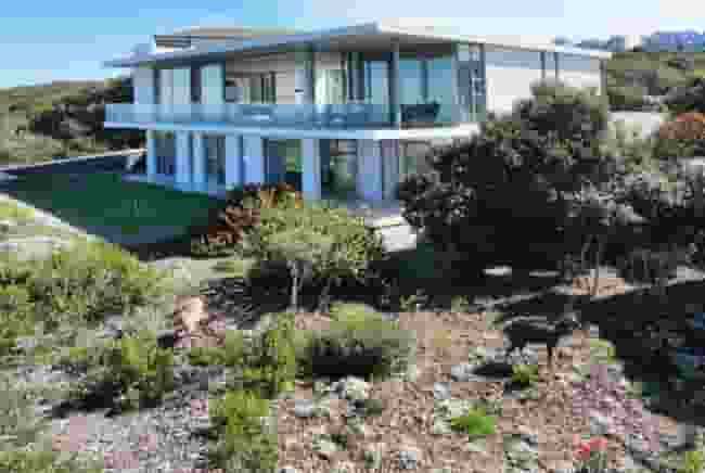 The inspired design of this impeccable home delivers wraparound ocean views and light-filled interiors. Sturdy glass corner windows allow brilliant views of the colourful landscaped garden, filled with tapered shrubs and indigenous plants. The versatile and generous accommodation includes a section of the house and downstairs living room that could be converted into a separate 2-bedroom flat with its own entrance. Upstairs the living rooms and main bedroom are on one level for easy wheelchair access. A magnificent patio area with sliding doors links effortlessly to the sophisticated open-plan kitchen, dining and living room areas.