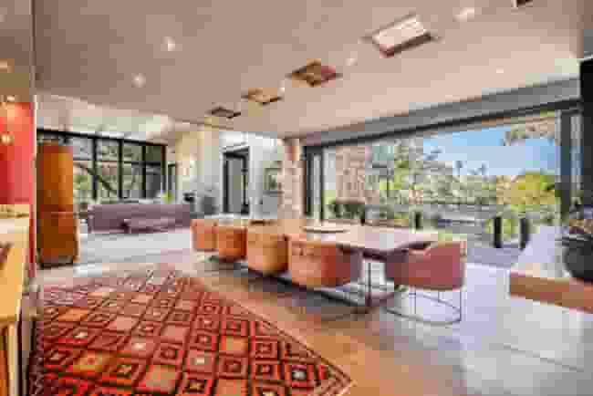 Welcome to this spectacular family home plus a private guest cottage built against the Ridge. The entrance gates open to reveal a hidden treasure set amongst a forest of majestic trees. Perfectly positioned in this peaceful green valley, sits a remarkable bold structure engineered on multi-levels and integrating seamlessly within the idyllic environment. Spacious living rooms lead onto private balconies and a vast entertainment deck for long al-fresco and celebration dining beside the pool. A private hideaway, built with modern lines, Westcliff stone and filled with beautiful natural light.