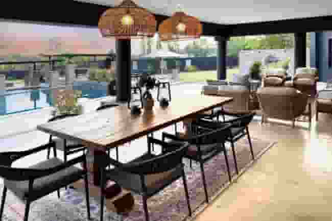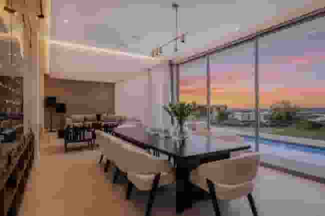 Set on a desirable corner stand within Park Ridge, this beautifully designed 5-bedroom residence offers a refined balance of modern architecture, generous proportions, and effortless family living. With abundant natural light, a seamless indoor–outdoor flow, and private garden spaces, the home is ideal for both everyday comfort and stylish entertaining. A double volume entrance and lounge sets the tone, enhanced by expansive glazing that floods the interiors with light. The open-plan living areas connect seamlessly to the outdoor entertainment space via stacking doors, leading to a sparkling pool and private garden.